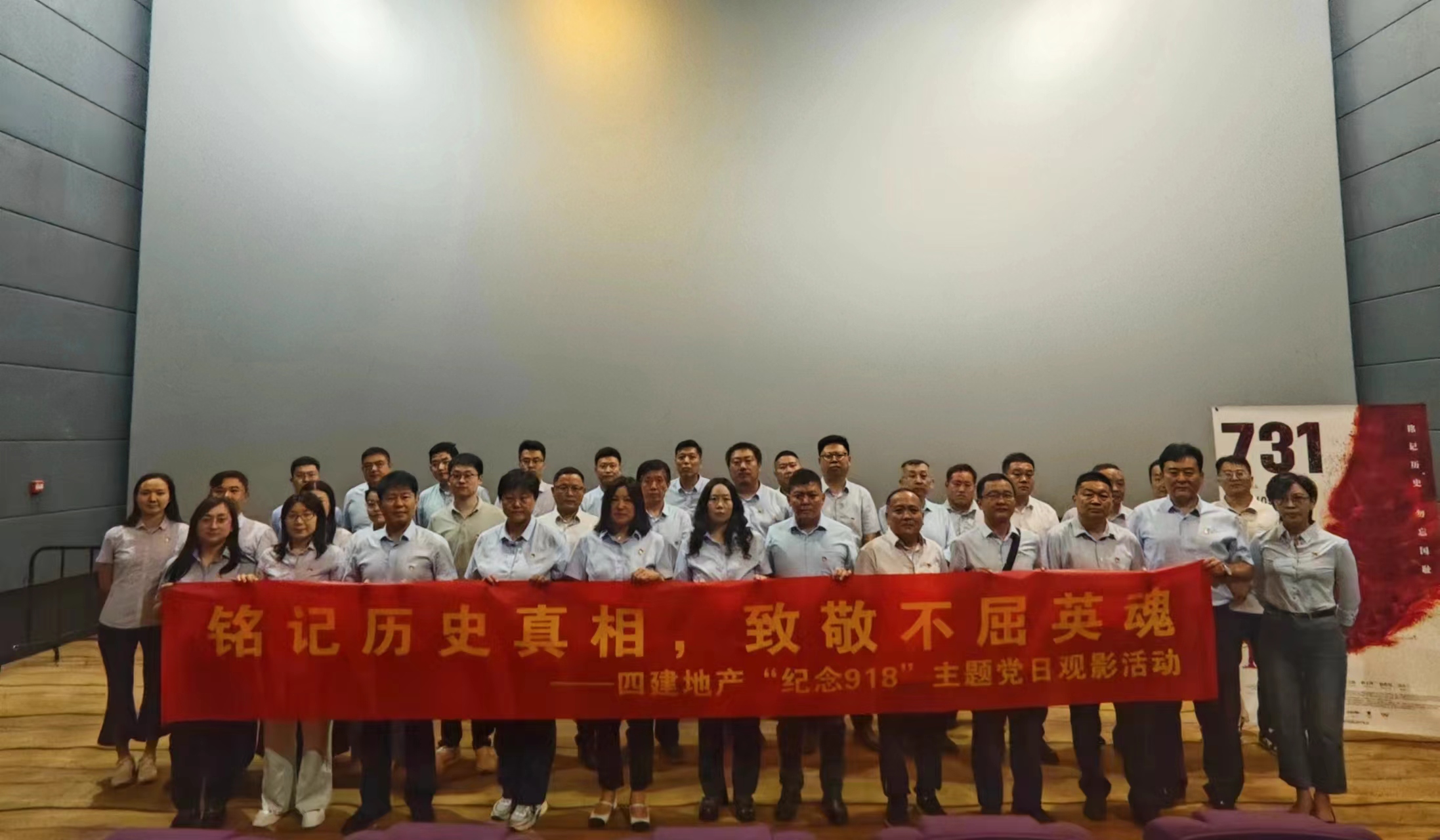 2025年9月18日下午,在“九一八事變”94周年之際,為踐行社會(huì)主義核心價(jià)值觀、弘揚(yáng)愛國主義精神,在四建地產(chǎn)副總經(jīng)理、萬盛物業(yè)總經(jīng)理李勇的帶領(lǐng)下,四建地產(chǎn)黨支部組織全體黨員、入黨積極分子、青年員工代表,開展了“銘記歷史真相,致敬不屈英魂”主題觀影活動(dòng),共同觀看愛國主義教育影片《731》。