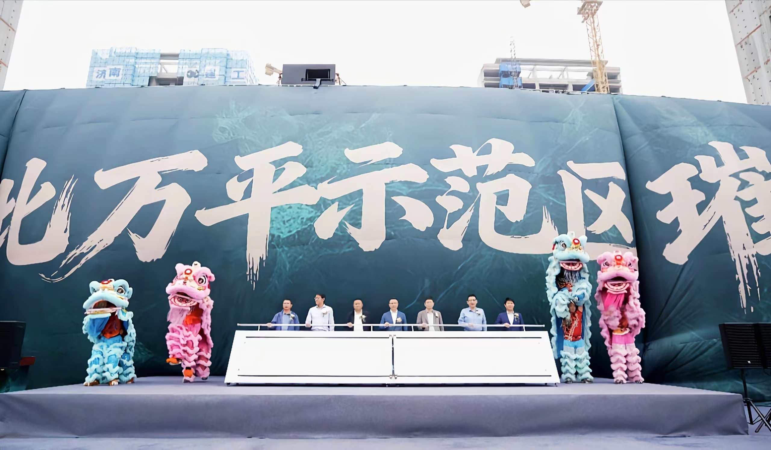 十點(diǎn)十分,祥瑞舞獅躍動(dòng)登場(chǎng),昂揚(yáng)騰挪間,為項(xiàng)目注入吉祥寓意與勃勃生機(jī),將現(xiàn)場(chǎng)氛圍推向高潮。接著,在全場(chǎng)嘉賓的矚目與倒數(shù)聲中,張總攜手多位領(lǐng)導(dǎo)共同推動(dòng)啟動(dòng)桿,舞臺(tái)吸幕瞬間升起,金海瑞園恢弘的大門(mén)豁然眼前,萬(wàn)平園林示范區(qū)的勝景也在此刻全景呈現(xiàn),引來(lái)陣陣贊嘆。同時(shí),舞獅吐青,卷軸鋪展,“責(zé)任國(guó)企,品質(zhì)筑家;瑞境天成,盛啟非凡”十六字宣言熠熠生輝,標(biāo)志著金海瑞園萬(wàn)平園林示范區(qū)正式華彩綻放。最后,各位領(lǐng)導(dǎo)在舞臺(tái)上合影留念,定格這一意義非凡的瞬間。